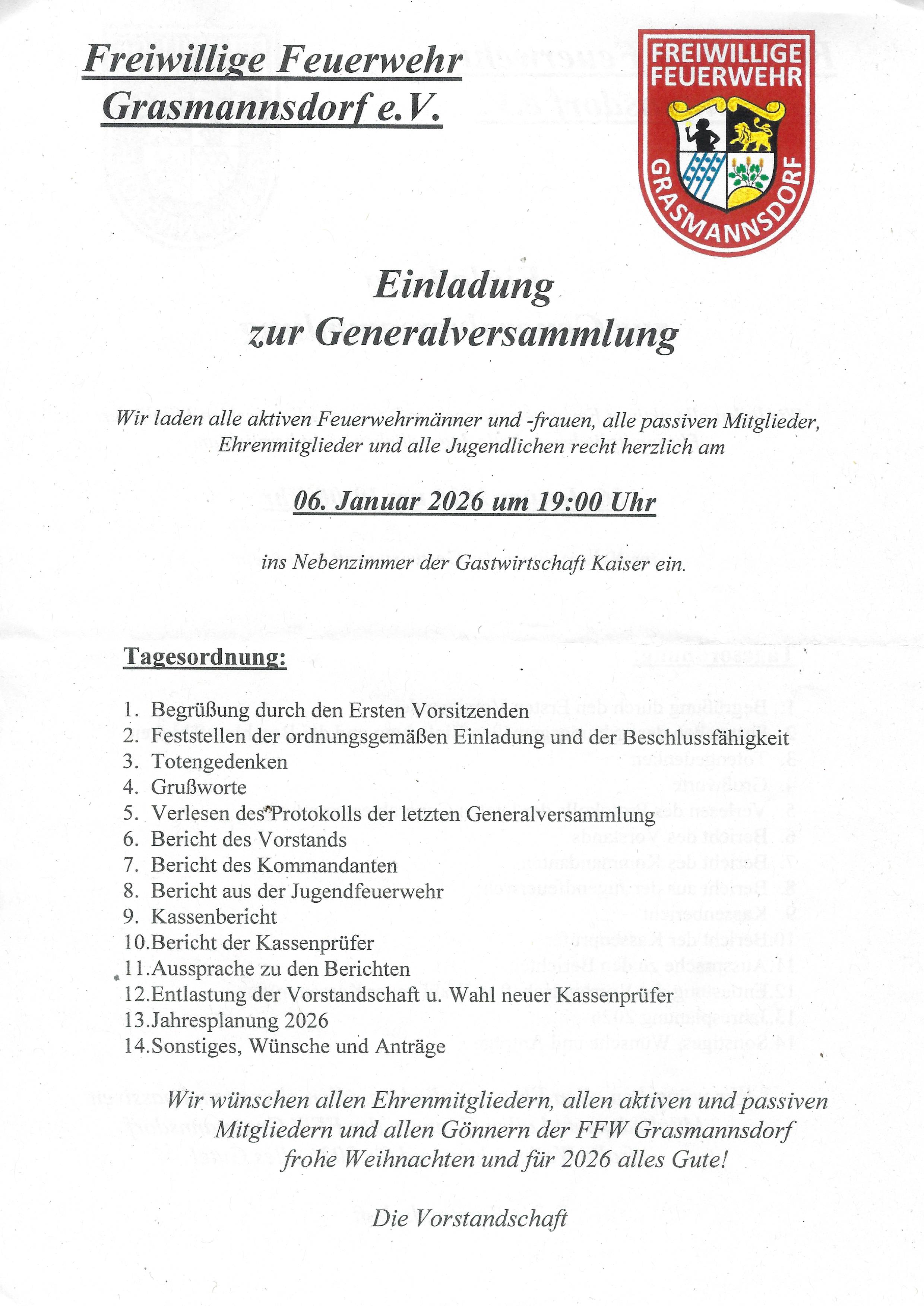 Generalversammlung der FFW Grasmannsdorf